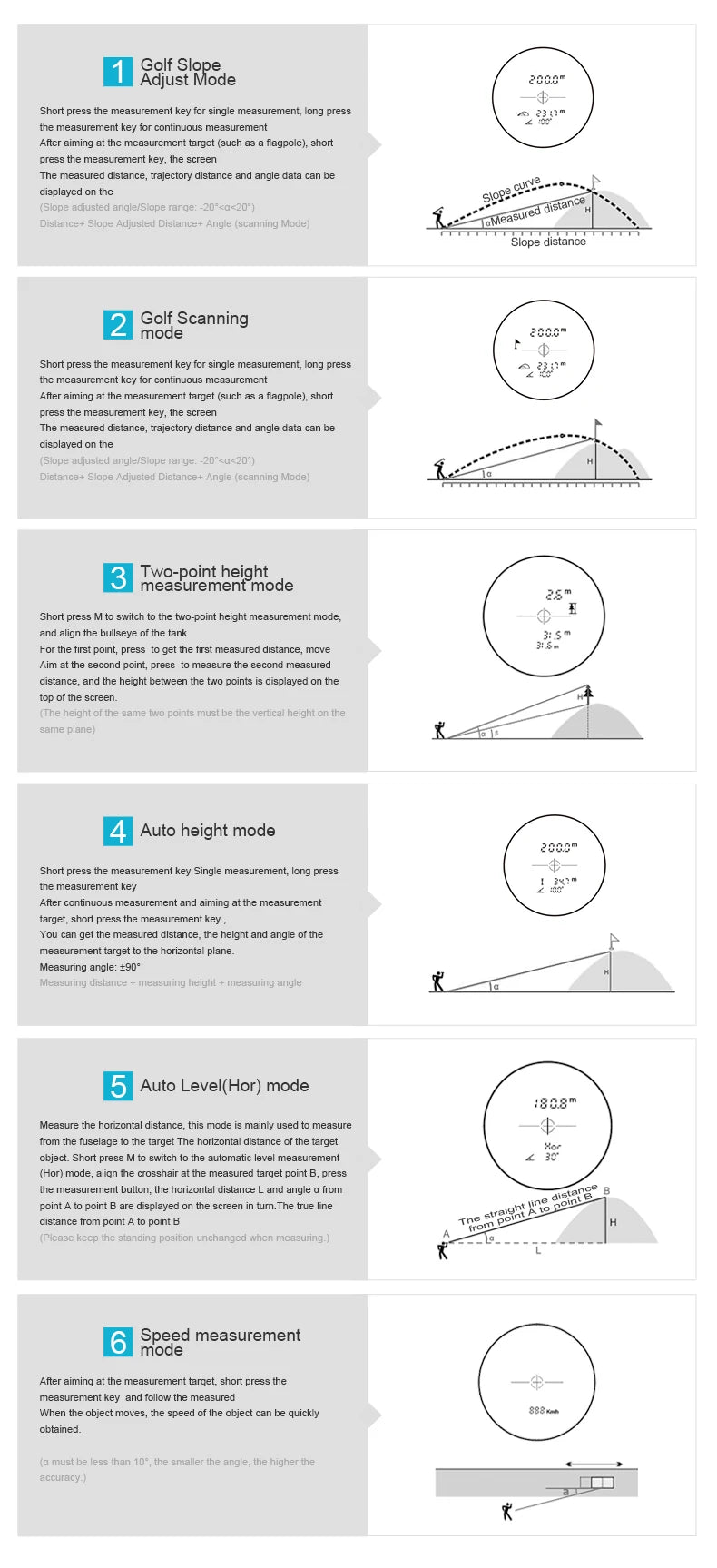 Mileseey PF2E Golf Laser Rangefinder – 400m/600m, 6x Zoom, Slope Adjustment