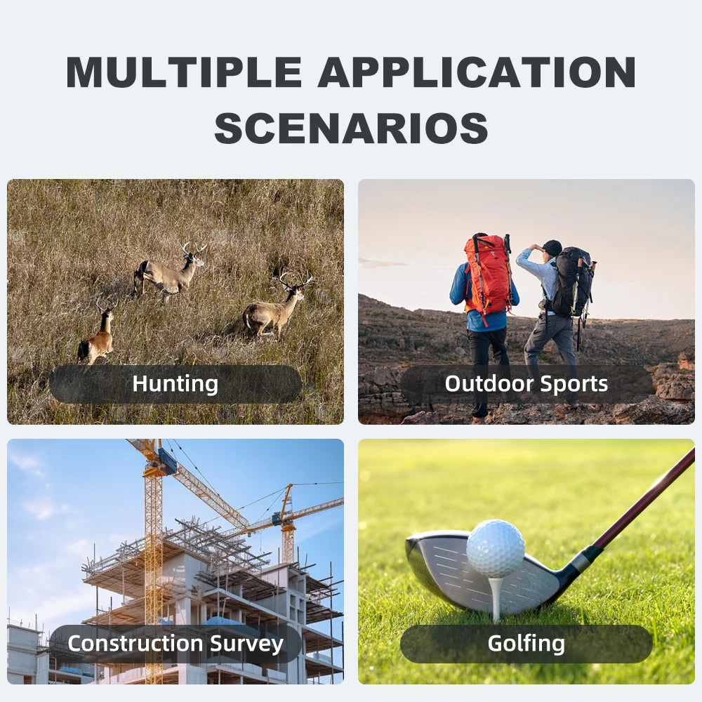 Application: multi-function monocular rangefinder application, hunting/golf/frisbee golf/building construction/altitude measurement/speed measurement...