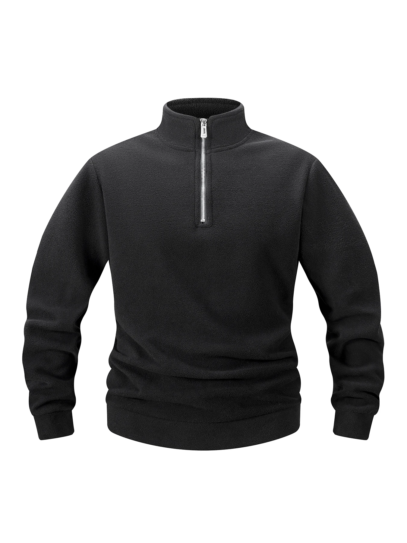 4.A quarter zipper can be pulled up to create a stand up collar for warmth, or pulled down to create a polo shirt look